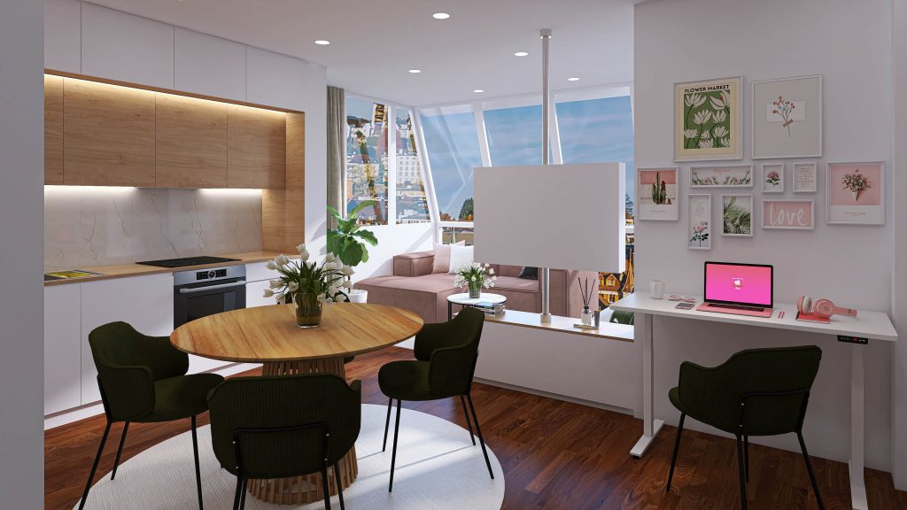 Pri preureditvi ali gradnji objektov vam po izdelanih načrtih in izbrani ideji izdelamo tudi 3D prikaz vašega novega objekta, doma, pisarne. 3D izris omogoča lažjo predstavo novih prostorov, prav tako pa olajša pot oblikovanja prostorov, pohištva skladno z vašimi željami. Marsikomu je izris tudi v pomoč pri izbiri barvnih kombinacij, saj se lahko barve sten in pohištva popravljajo ali zamenjajo in tako ima naročnik pred seboj predogled objekta, katerega si zlahka predstavlja do zadnje podrobnosti.